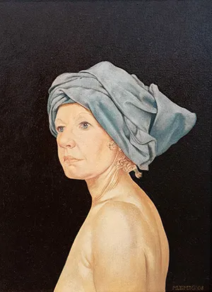 Frau mit blauem Tuch