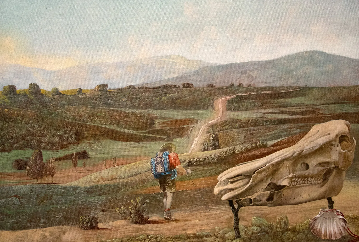 Sechs Wochen auf dem Jakobsweg in Spanien haben ihre Spuren hinterlassen, in der spanischen Landschaft und auch in den Pilgern; zahlreiche Aquarelle, Zeichnungen und Gemälde sind das Ergebnis